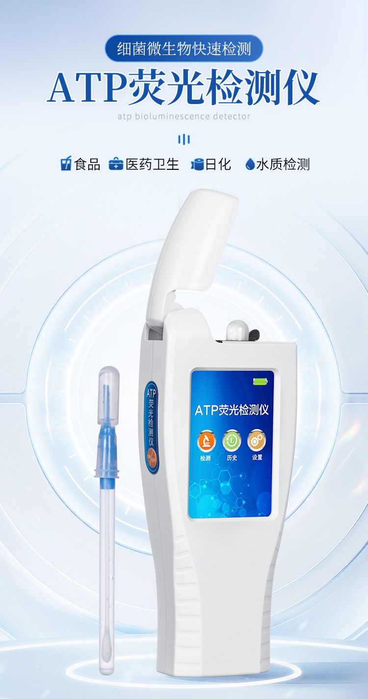 該設備采用生物化學反應方法檢測ATP含量,潔凈度檢測儀基于螢火蟲發光原理,利用“熒光素酶—熒光素體系”快速檢測三磷酸腺苷(ATP)。ATP拭子含有可以裂解細胞膜的試劑,能將細胞內ATP釋放出來,與試劑中含有的特異性酶發生反應,產生光,再用熒光照度計檢測發光值,微生物的數量與發光值成正比,由于所有生物活細胞中含有恒量的ATP,所以ATP含量可以清晰地表明樣品中微生物與其他生物殘余的多少,用于判斷衛生狀況。