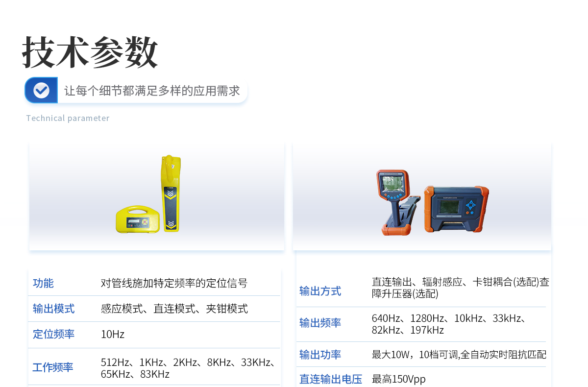 | 1、采用DSP處理器,運算速度快,精度更高; | 2、帶有導向功能指標管線走向,定位更快; | 3、采用10W寬頻發(fā)射機,適應各種環(huán)境的探測; | 4、接收機和發(fā)射機都采用鋰電池組供電,節(jié)能環(huán)保,每年可節(jié)省3000-5000元的電池費用。 |