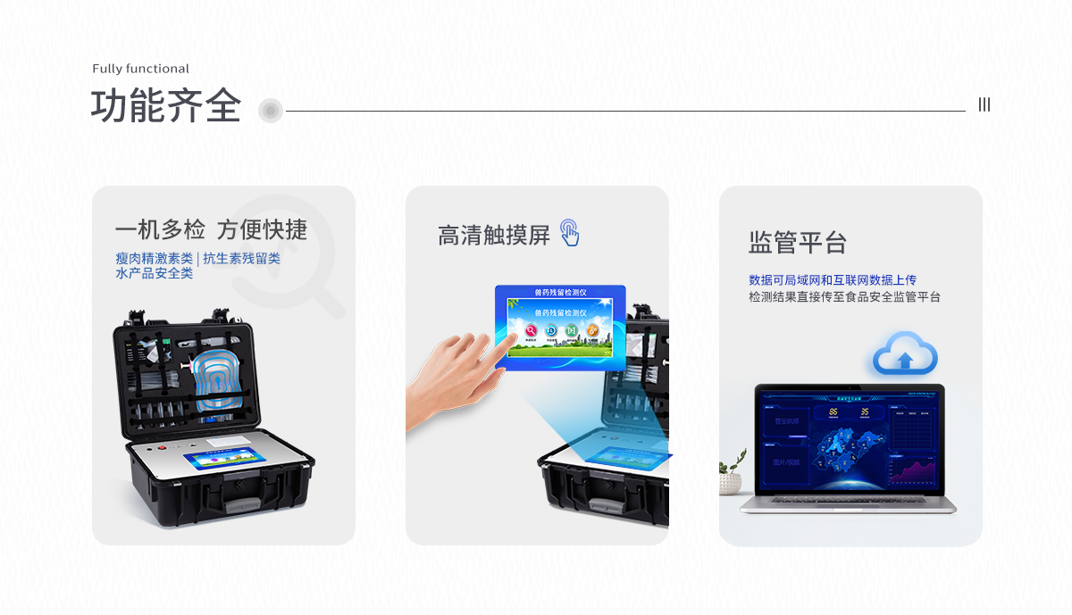6、一體化便攜式快檢設(shè)備,滿足現(xiàn)場(chǎng)及流動(dòng)檢測(cè)使用需求,能夠在同一軟件下實(shí)現(xiàn)所有檢測(cè)項(xiàng)目的檢測(cè),并可通過同一窗口直觀顯示檢測(cè)結(jié)果。