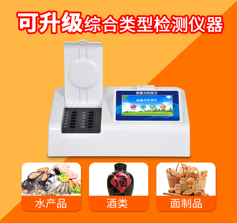 該多功能食品安全檢測儀為集成一體化食品安全快速檢測分析設備,廣泛應用于市場監(jiān)管局、食品肉產(chǎn)品深加工企業(yè)、衛(wèi)生部門、學校食堂、農(nóng)業(yè)部門、養(yǎng)殖場、屠宰場、檢驗檢疫部門等單位使用。
