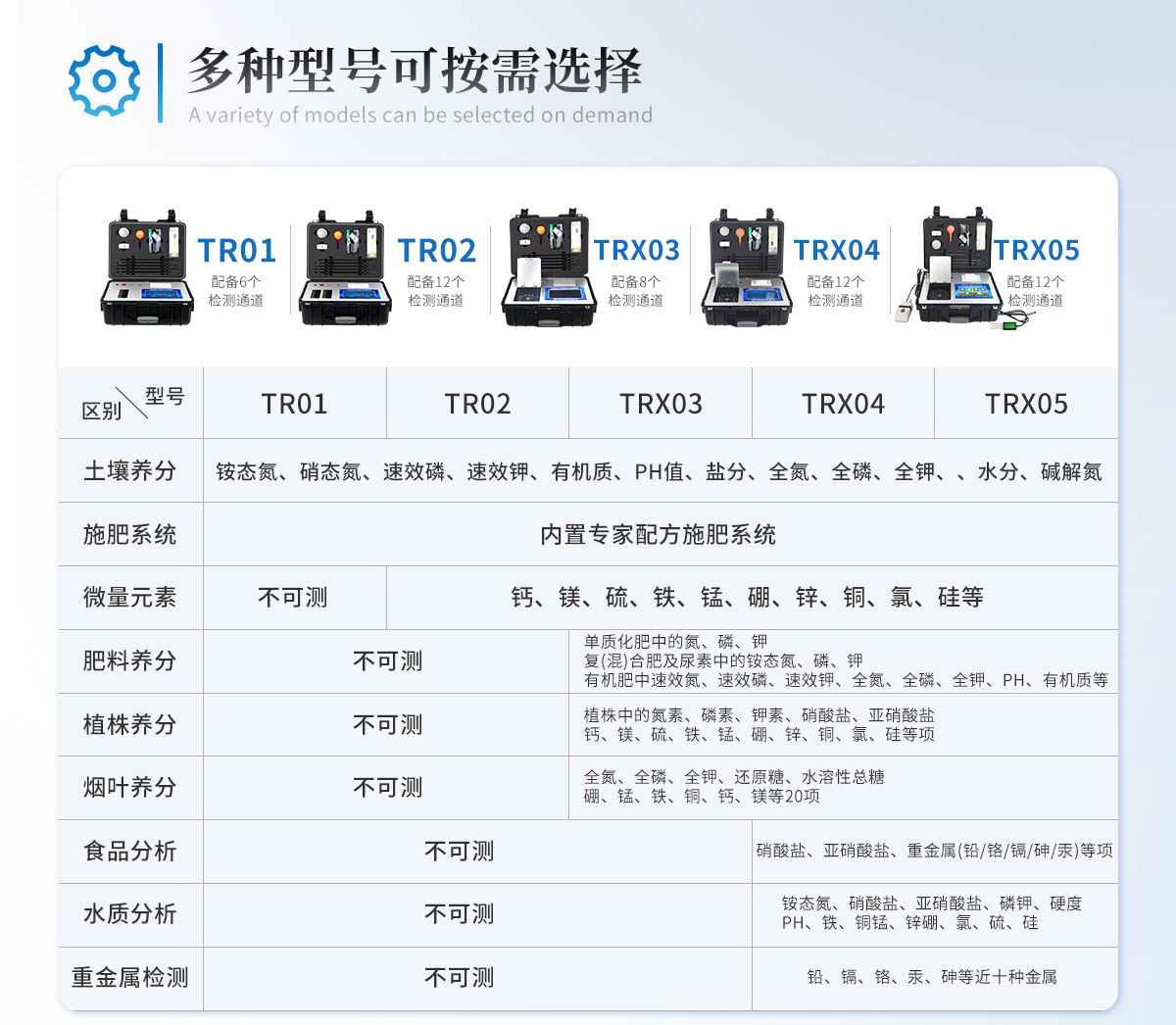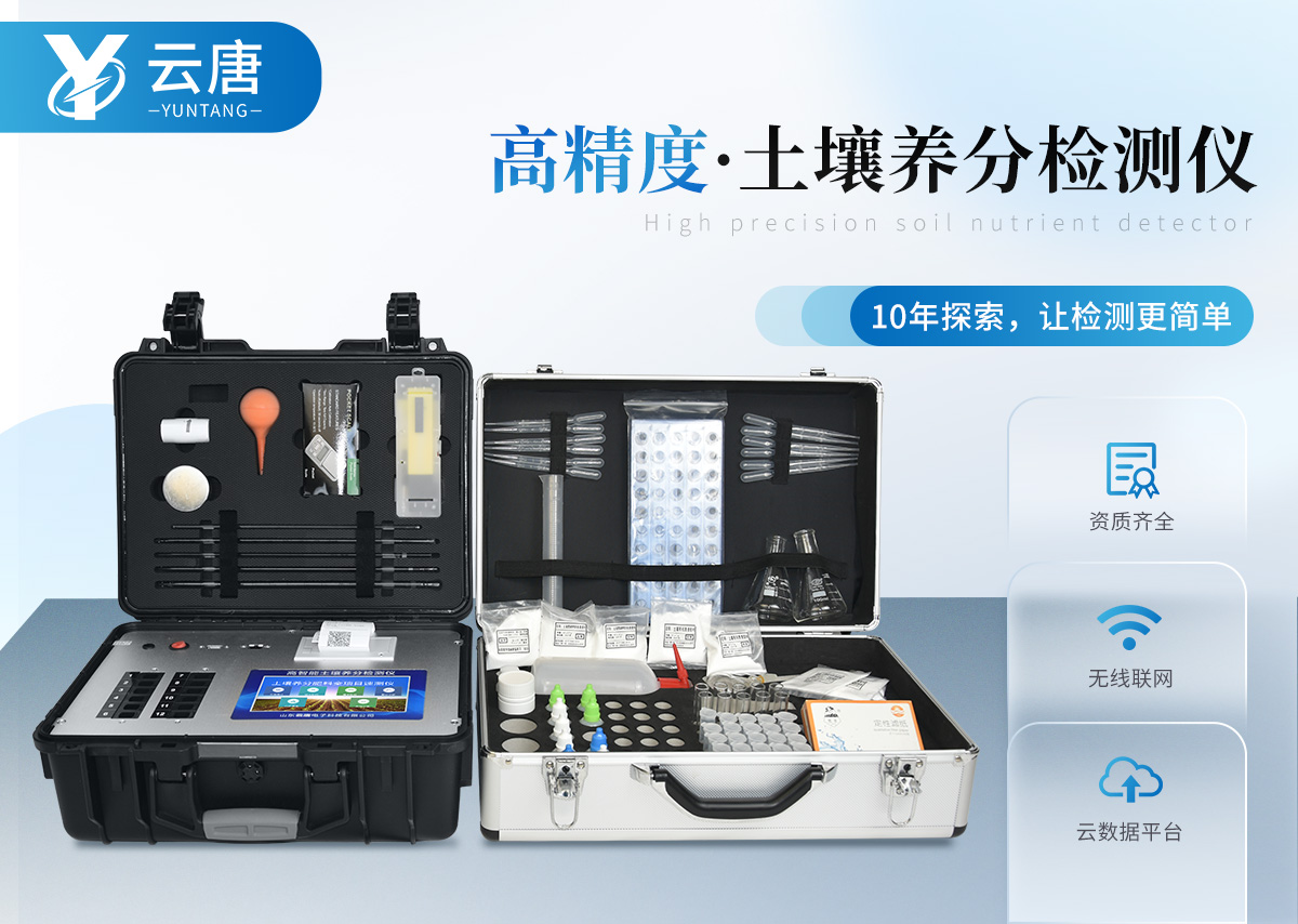 配套齊全:該儀器集藥、器、儀為一體,攜帶方便,相當于一個小型移動實驗室,無需用戶自配附件,亦可靈活野外流動測試。適于農業服務部門或農資經銷商、合作社、肥料廠商、大種植戶測土施肥。
