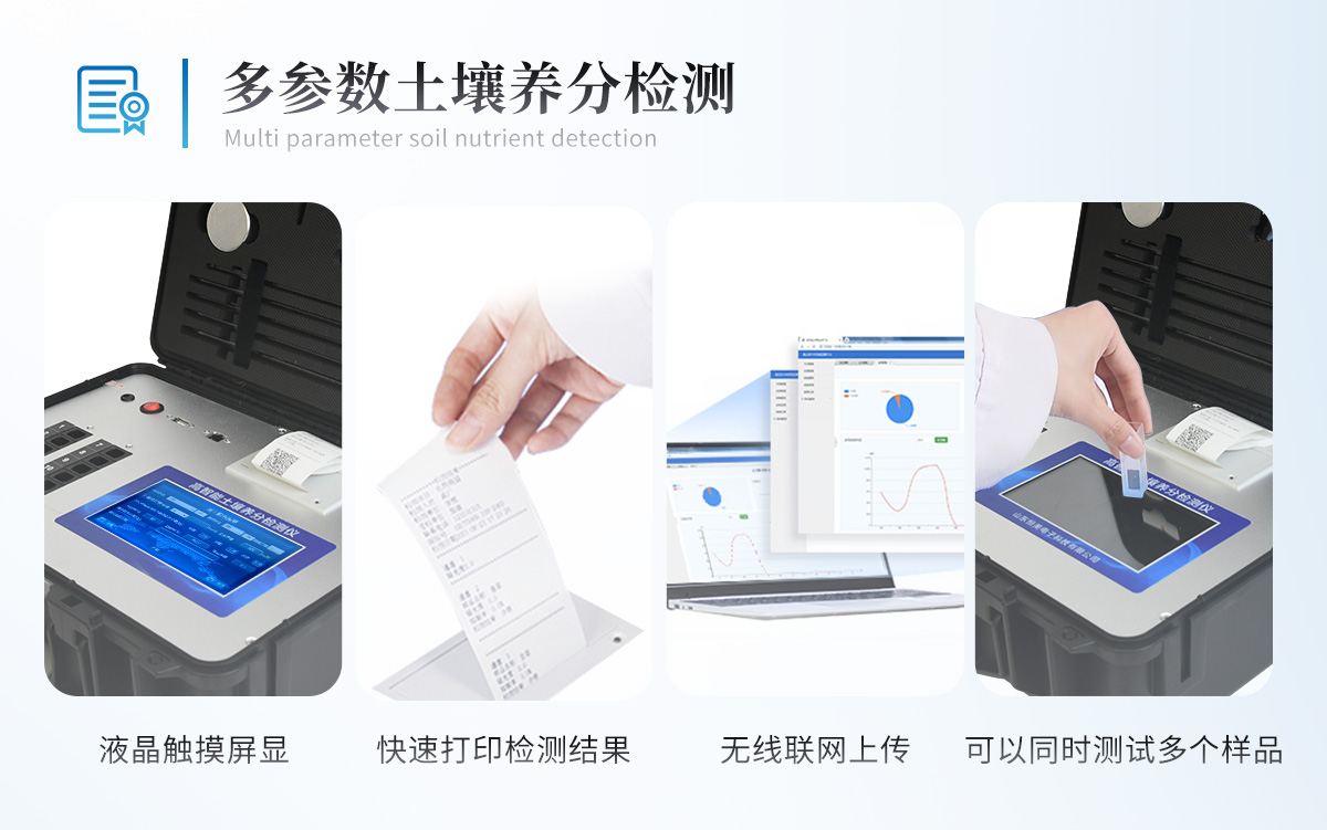 測試速度:正常熟練程度下,測一個土壤樣品(N、P、K)三項需要20分鐘(含藥劑準備及土樣前處理時間),同時檢測三個土壤樣品(N、P、K)≤40分鐘,同時測8個土樣≤1小時。